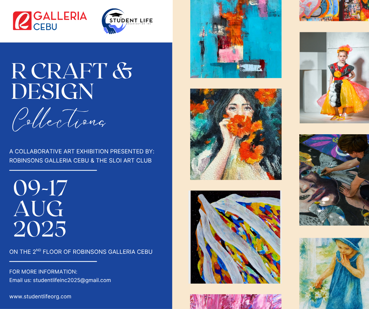 Student Life Organization Inc. is honored to collaborate with Robinsons Galleria Cebu for a special art exhibition titled “R Craft & Design Collections,” happening from August 9 to 17.
