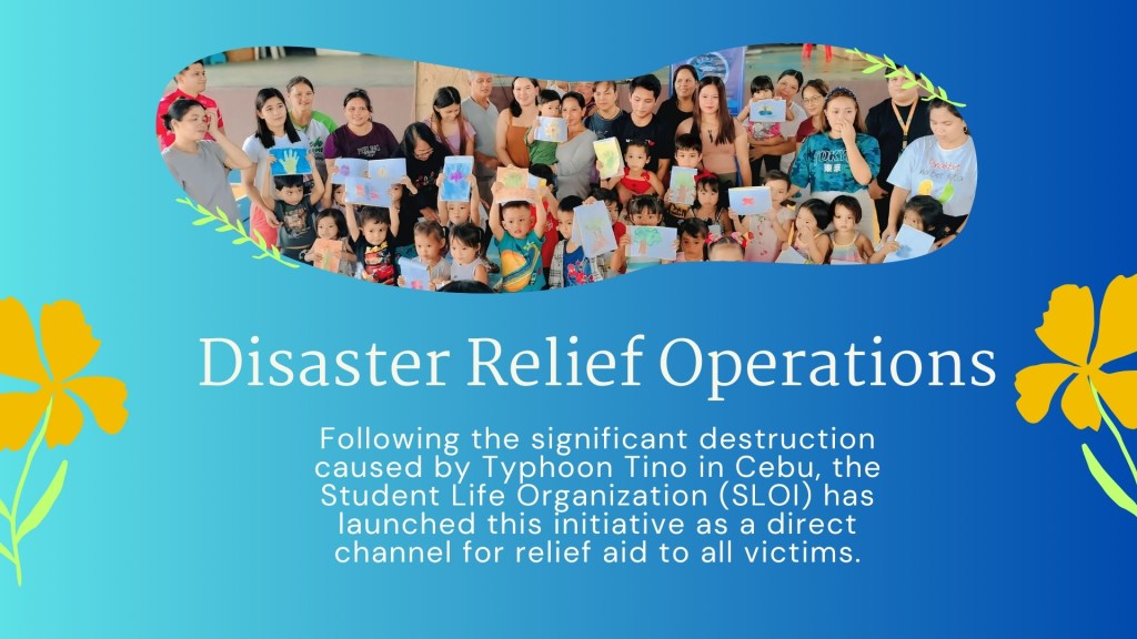 The Student Life Organization is currently conducting Disaster Relief Operations. We welcome your support; please contact us to learn how you can contribute.HOW TO HELP